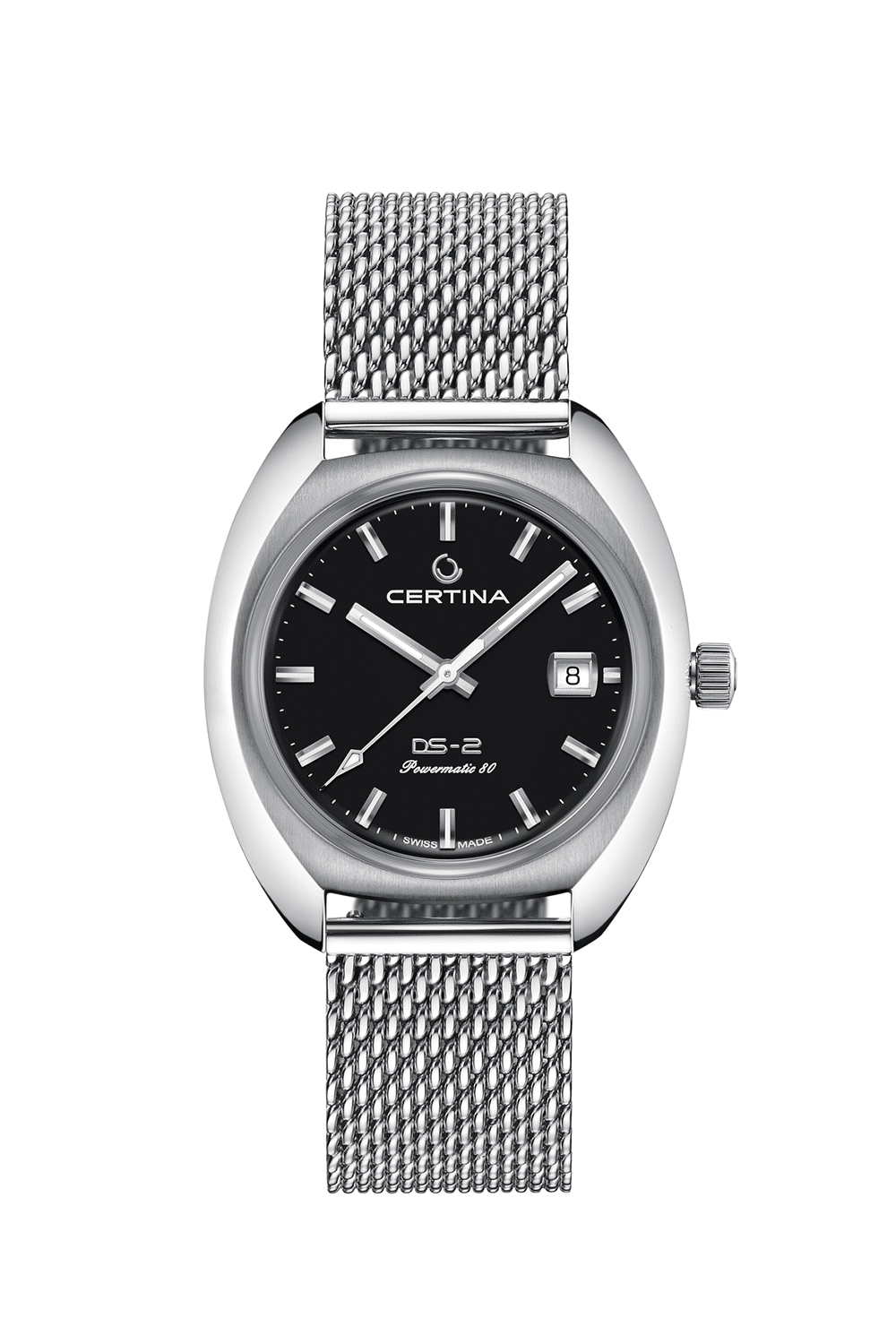 Certina DS-2 Powermatic 80 i 40mm har et svært flott og retro-kult design. Den perfekte kombinasjonen av vintage utseende på utsiden og moderne høyteknologi på innsiden.