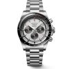 Siden 1954 har Conquest-kolleksjonen blitt produsert som en hyllest til de som våger å utforske nye horisonter utover det vanlige. Hver klokke inkorporerer en sømløs forening av ytelse og eleganse, som også inkluderer de mest avanserte tekniske egenskapene. Denne modellen i stål måler 42mm og har en hvit tallskive beskyttet av et ripesikkert safirglass. Klokken er drevet av Longines Calibre L898, et automatisk urverk med kronograf-funksjon og 59 timer gangreserve. Conquest Chronograph presenteres på en stållenke med trippel foldespenne.