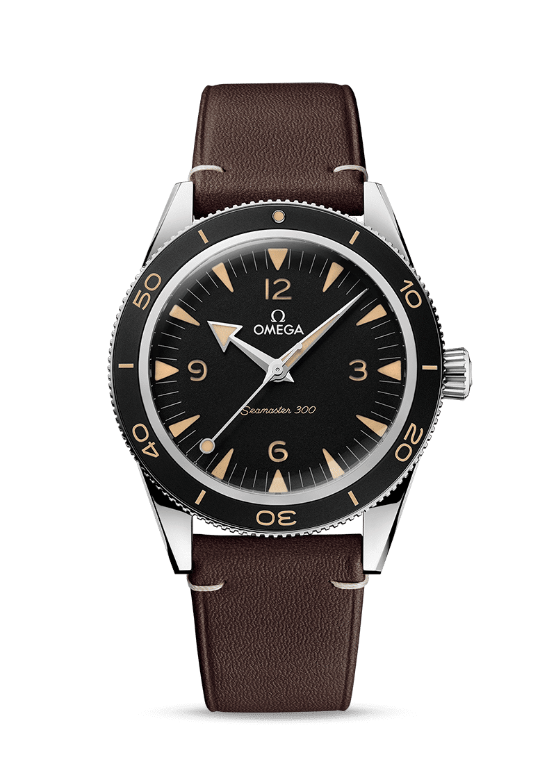 OMEGA introduserte Seamaster 300 først i 1957 – da var den designet spesielt for dykkere og fagfolk som jobbet under vann. Mer enn 60 år senere har klokken blitt fullstendig oppgradert med en forbedret kasse som er klar for en ny generasjon eventyrere. Kassen i rustfritt stål måler 41mm og har en sort urskive og en sort oksalisk anodisert aluminiumsbezel med dykkerskala fylt med vintage Super-LumiNova. De innfelte timeindeksene og de åpne tallene har Super-LumiNova, som også finnes på de rhodiumbelagte viserne.