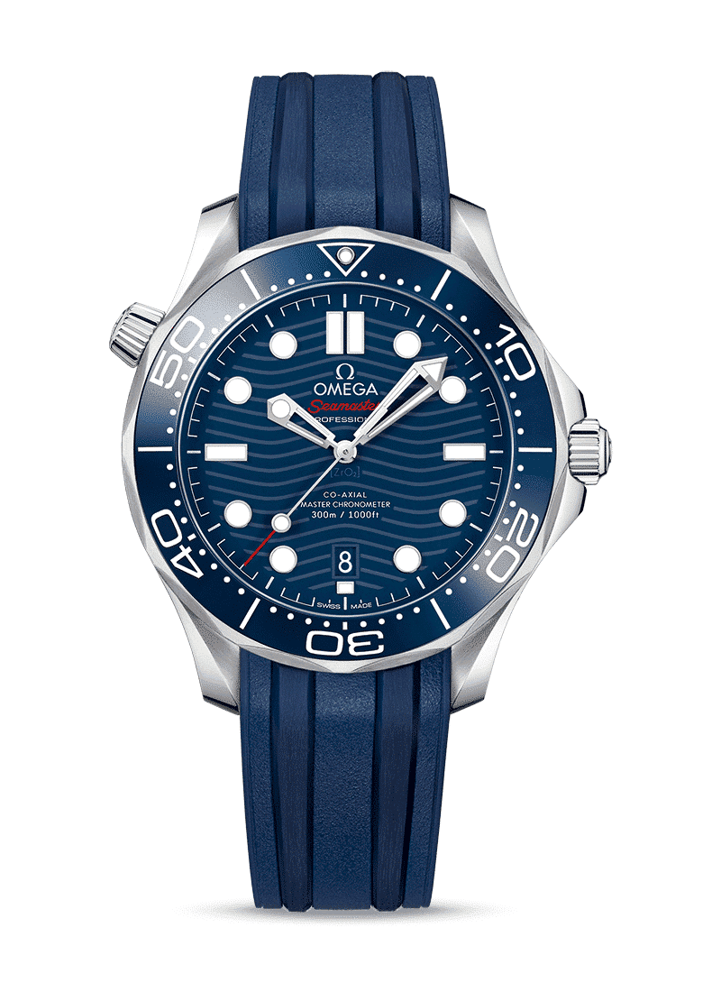 Siden 1993 har Seamaster Professional Diver 300M hatt en legendarisk tilhengerskare. Dagens kolleksjon har omfavnet den berømte tilknytningen til havet og oppdatert den med OMEGAs seneste design og innovasjoner. Denne 42 mm-modellen er laget av rustfritt stål og inkluderer en blå keramisk bezel med en dykkerskala i hvit emalje. Urskiven er også produsert i polert blå keramikk og har lasergraverte bølger og et datovindu plassert ved klokken 6. De uthulede viserne og hevede indeksene er rhodiumbelagte og er fylt med hvit Super-LumiNova, samtidig har heliumsventilen har fått en konisk design.
