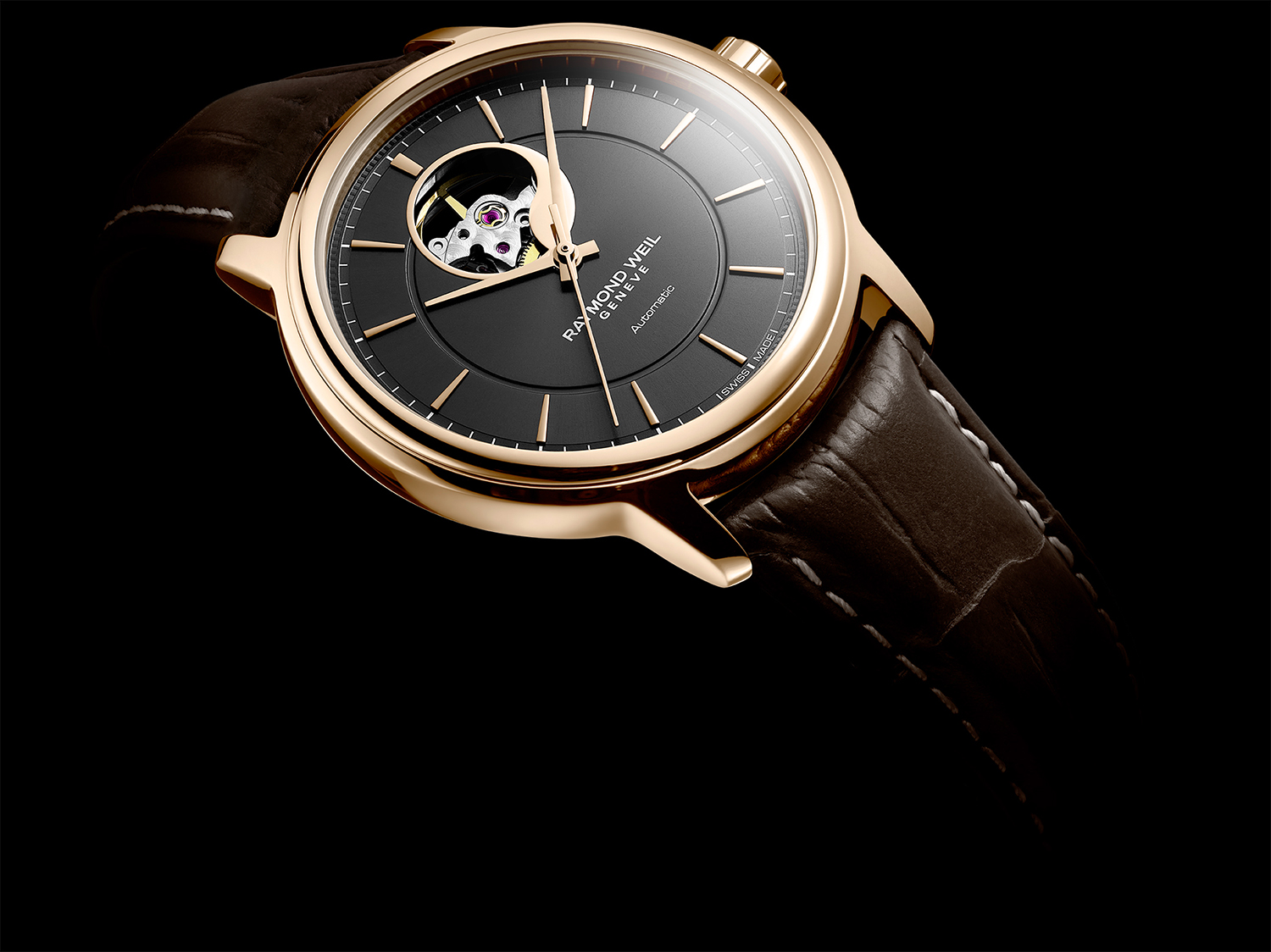 Raymond Weil Maestro Men’s Automatic Visible Balance Wheel Brown Leather Watch 40mm – 2227-PC5-20021