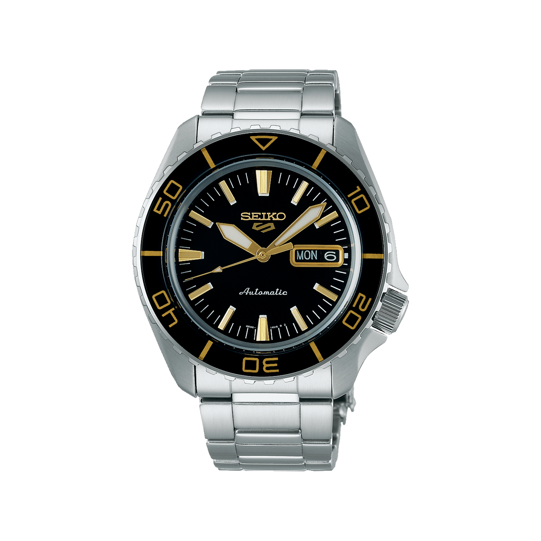 Den første Seiko 5-klokken, Seiko Sportmatic 5, ble født i 1963. Det var Seiko og Japans første automatiske day-dateklokke. »5» representerer løftet om at hver Seiko 5-klokke skal ha fem nøkkelegenskaper; et automatisk urverk, en day-date-visning i klokken tre-posisjon, vannmotstand, en innfelt krone i klokken fire-posisjon og en kasse og et armbånd bygget for holdbarhet. Denne modellen i stål måler 42.5mm og har en sort tallskive med selvlysende visere og indekser. Uret er utstyrt med Seiko sitt egenutviklede kaliber 4R36, et automatisk urverk med 41 timer gangreserve. Disse klokkene har fått et rykte som en «go-anywhere»-klokke som gir et unikt utseende og høy kvalitet til en fornuftig pris.