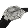 PRX Automatic har et elegant eksponeringslokk i glass, som lar deg beundre det mekaniske urverket i drift, en detalj som understreker klokkens håndverksmessige kvalitet og tekniske finesse.