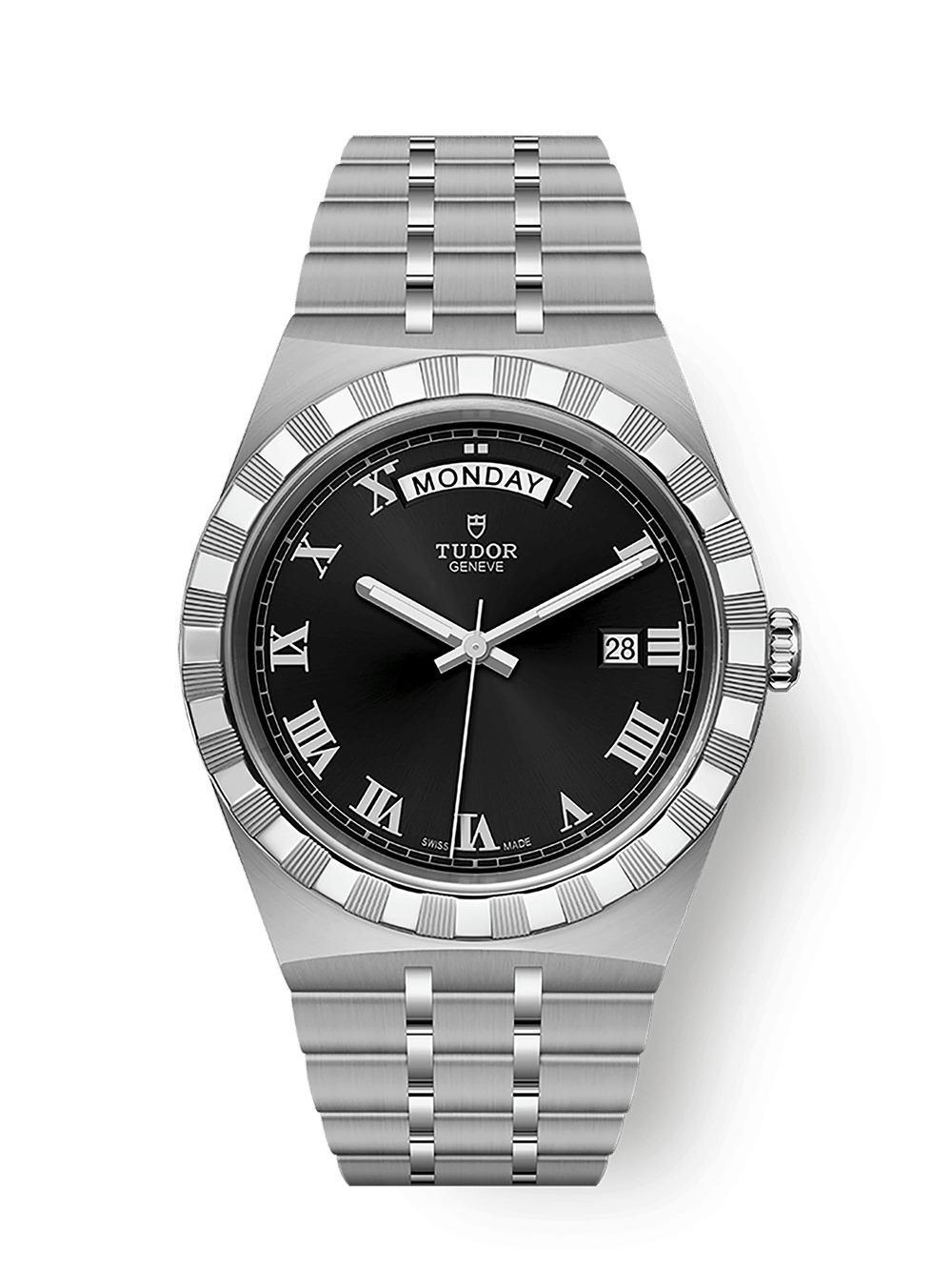 Tudor Royal M28600-0003 med sin integrerte lenke, 41mm kasse, giljose besel og automatiske urverk. Er Tudor Royal serien den optimale allsidige og rimelige sport-chic serien. I 41mm utgaven har klokken en dag og dato visning.